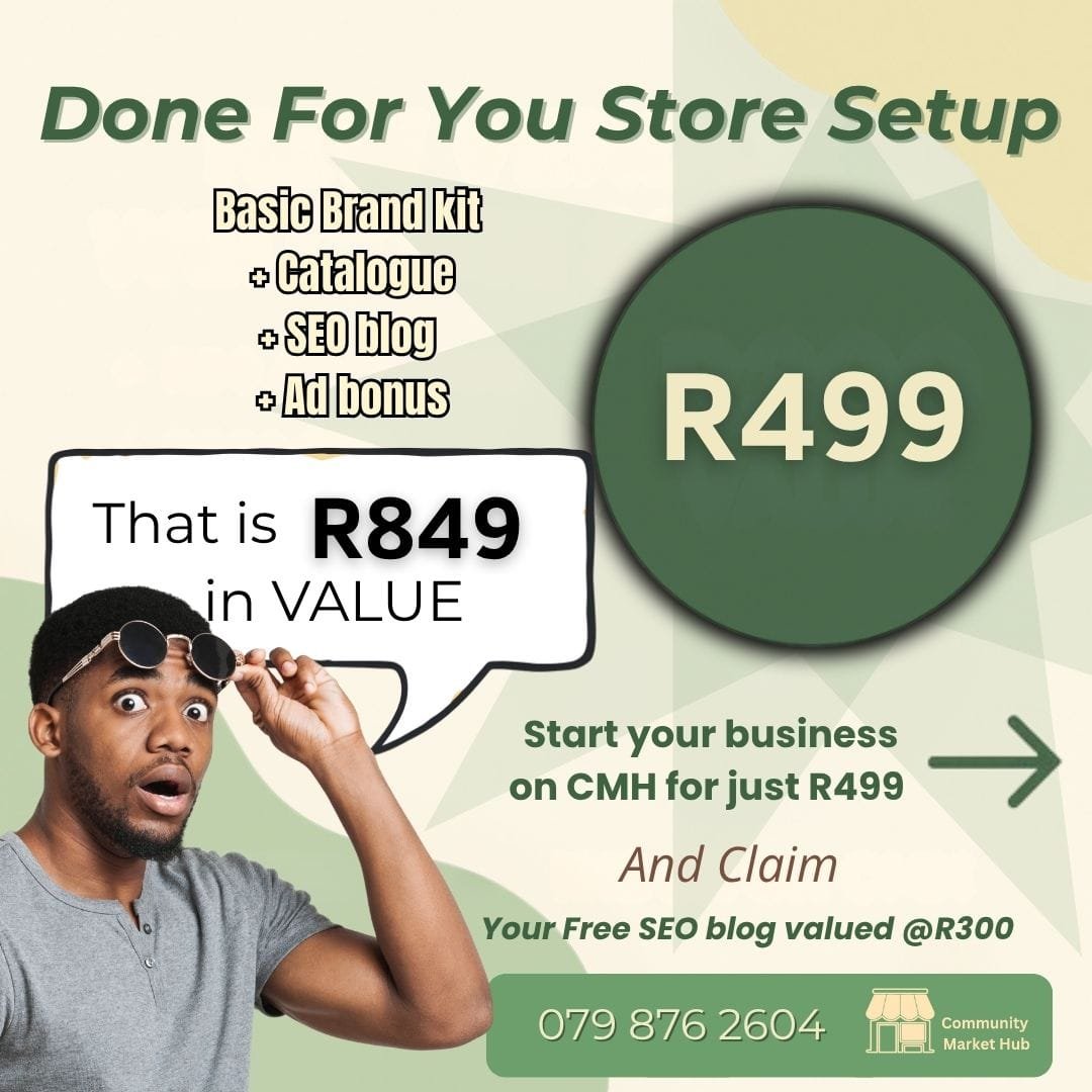 Start selling online today with our Done For You Store Setup for just R499. Get your logo, banner, and SEO-ready products done by CMH experts.